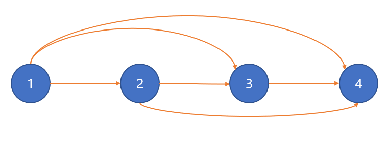 예를 들어 순위가 [1,2,3,4]인 케이스가 있습니다. 여기에서 ?가 나오기 위한 최소의 그래프를 그려보면