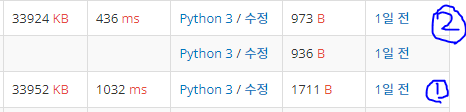 1번은 위상정렬 사용, 2번은 위상정렬을 사용하지 않은 경우 입니다. 2번은 위상정렬을 사용하지 않고 오직 정렬 1번, 선형 탐색 두번 O(2N+NlogN) = O(NlogN)을 진행했기 때문에 위상정렬+인접 그래프를 사용했던 1번O(N^2)보다 성능이 더 빨랐습니다.